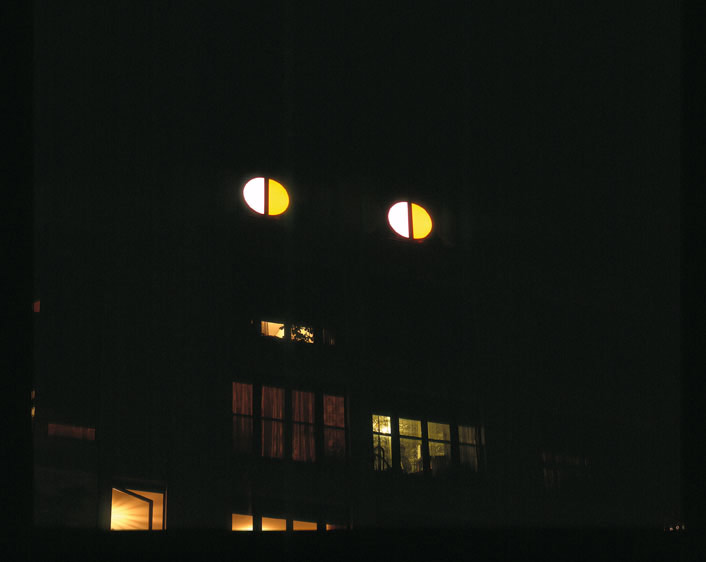 Ebenso ist die Tagwirkung der konzentrischen Kreise mit gut sichtbarer Beleuchtungstechnik sehr eindrucksvoll. Gerade die Stimmung mit den historischen Gebäuden wie Kirche oder Wohn-/Geschäftshaus gibt dem Kunstwerk eine besondere Note.